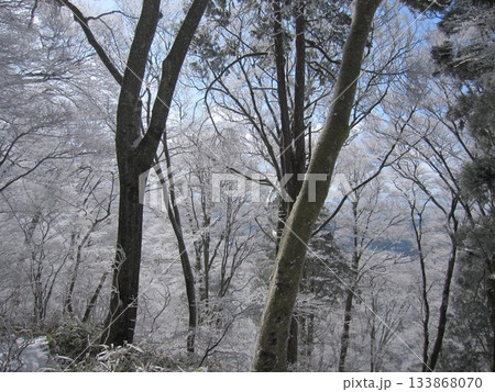霧氷に包まれた冬の樹林が織りなす白銀の静寂