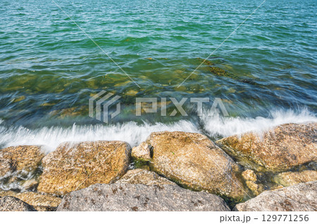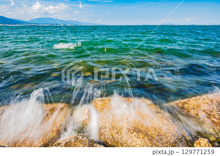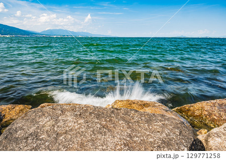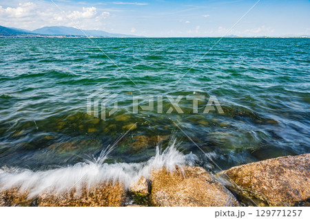 湖岸に打ち寄せる波 琵琶湖 大津市