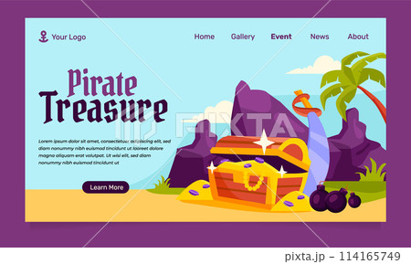 Pirate adventure landing page in flat design