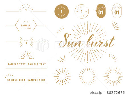 サンバーストのセット シンプル フレーム 飾り 装飾 あしらい 放射円 線 太陽線 見出し タイトル