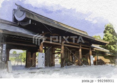 水彩画風 橿原神宮 内拝殿 奈良県橿原市