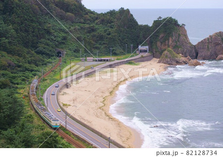日本海の絶景"笹川流れ"と"485系・特急いなほ"