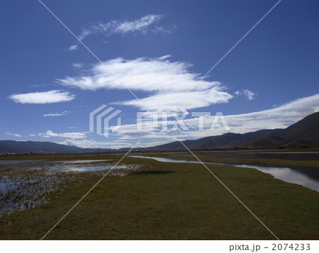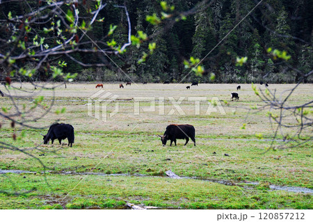 中国 雲南省 シャングリラ高原 壁塔海 湖畔の放牧地