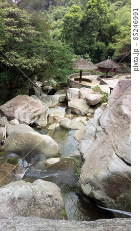 台北市内湖区の山の中の遊歩道の側の小川