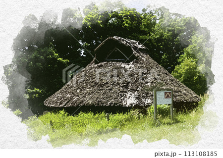 水彩画風 玉造温泉 出雲玉作史跡公園 復元古代玉作工房 島根県松江市