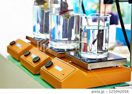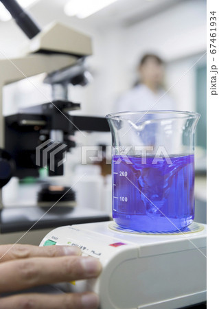 マグネチックスターラーを使う研究員 研究 開発 実験イメージ