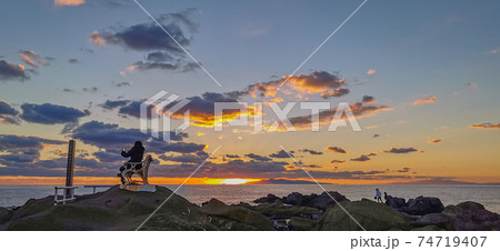 房総半島最南端の地 朝日と夕陽の見える岬 2人掛けベンチ