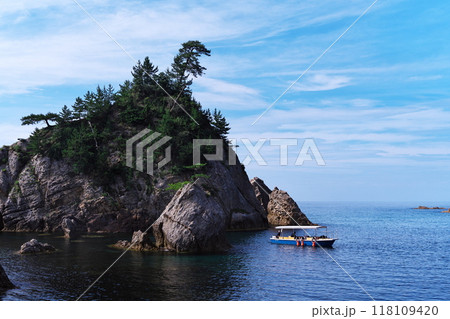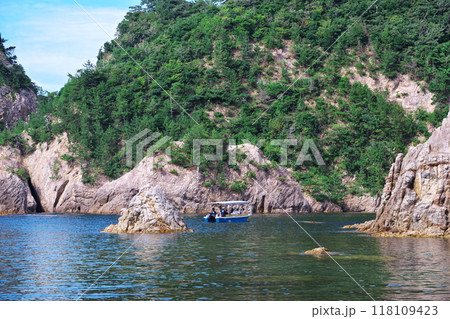 夏の鳥取県浦富海岸 鴨ケ磯を巡る遊覧船