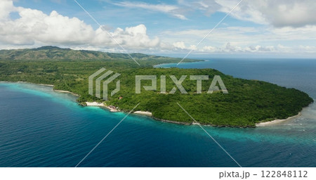 Aerial shots of this Magnificent Island surrounded by calm and deep blue sea water. Siquijor, Philippines.