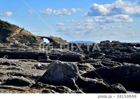 ゴジラ岩 太陽 潮瀬埼岩礁地帯奇岩怪石