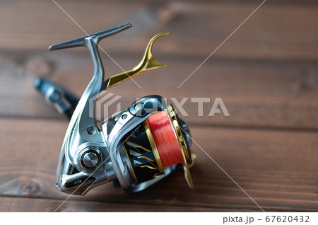 魚釣りのリールのアップ