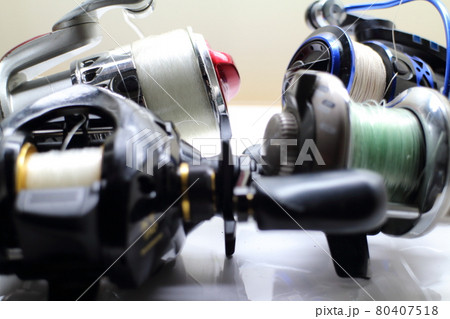 釣りを楽しむたくさんのリール