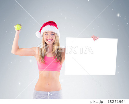 Composite image of festive blonde showing a blank banner