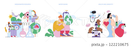 World Water Day illustration. Highlights the significance of sustainable water management and conservation practices. Showcases scientific research, water-saving initiatives, and the connection