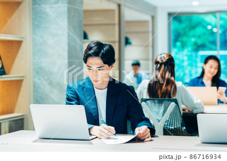 オフィスで働く若いビジネシマン