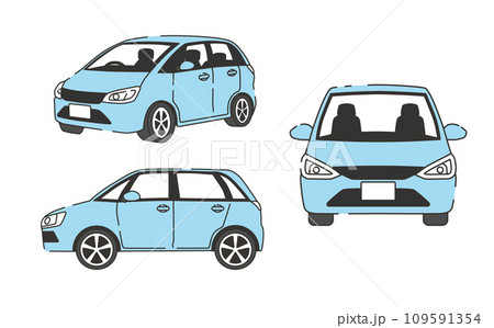 軽ワゴン車・正面・横向きイラスト素材