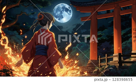 炎の神に捧げる神楽舞 ― 幻想世界の和風デジタル絵巻