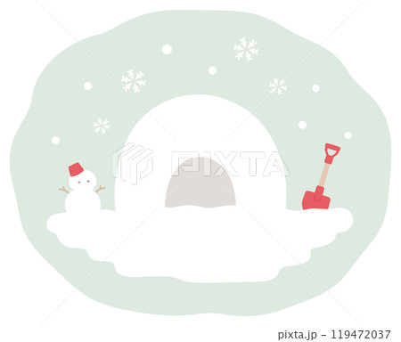 雪だるまとかまくらの冬のベクターイラスト素材03