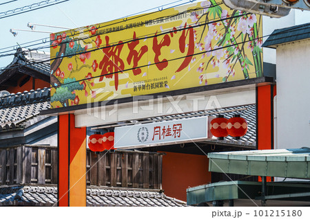 京都祇園の街並み 一力亭 都をどりの提灯 春