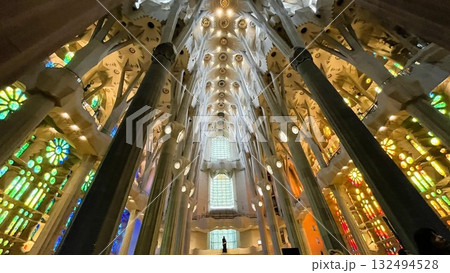 サグラダファミリア内部の自然界の森をイメージした「樹木の様な柱」と色鮮やかなステンドグラス