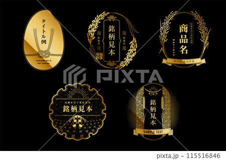 A retro Japanese style label set of rice and wheat. Luxurious gold design.