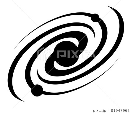 schematic spiral galaxy icon. Exploration of space and star clusters. Black hole in center of Milky Way galaxy. Simple black and white vector