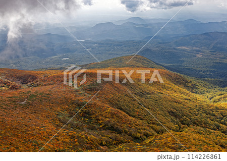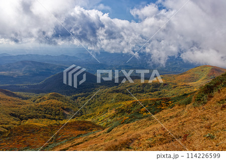 秋の栗駒山から見る紅葉の山肌