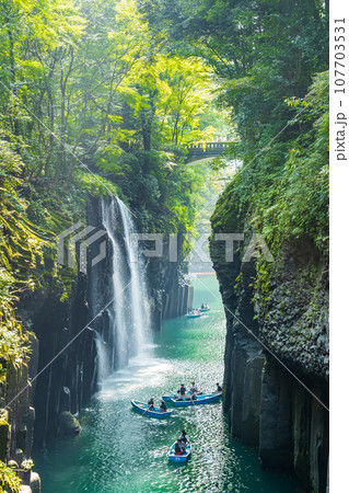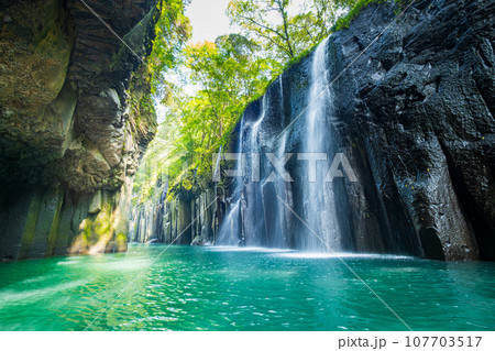 宮崎県の高千穂峡 断崖と美しい真名井の滝
