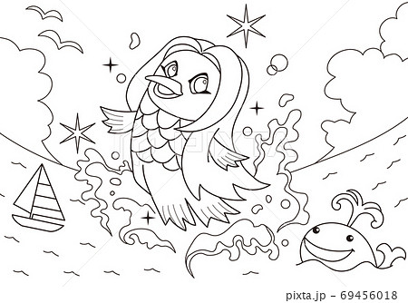 疫病退散!アマビエちゃんのぬりえイラスト