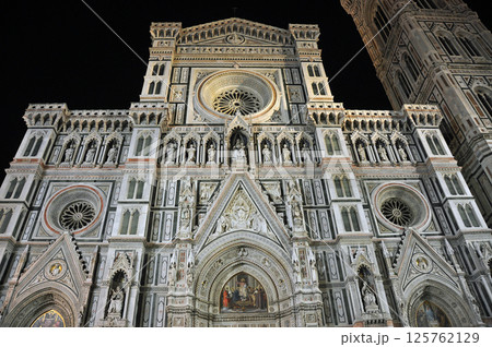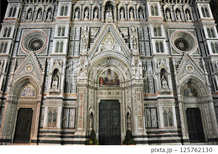イタリア フィレンチェ ライトアップされたドゥオーモ ファサードの中央