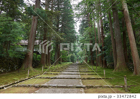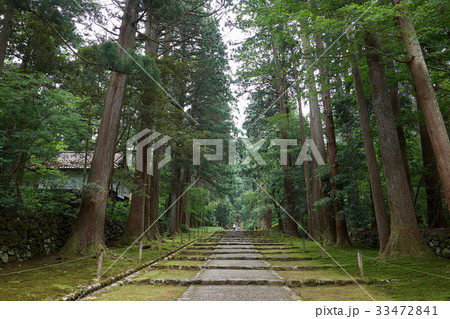 白山平泉寺、拝殿前の杉木立と苔庭、福井県