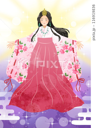 日本神話 神 アマテラス 天照大神 水彩 イラスト