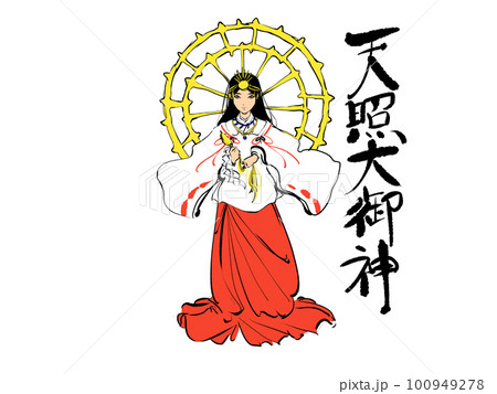 文字入りで正面を向いて立っているアマテラスオオミカミ