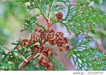 茶色いヒノキの実(冬、十二月)