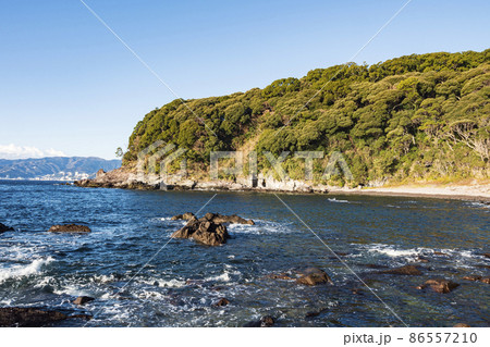 伊豆半島の景勝地の神奈川県足柄下郡真鶴町の真鶴半島の冬(番場浦)