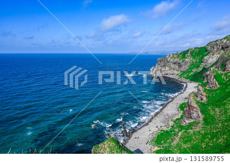 北海道積丹町 新緑が美しい夏の神威岬と神威岬灯台
