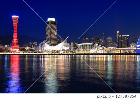 兵庫県神戸市中央区 神戸の夜景 ポートタワーとメリケンパーク