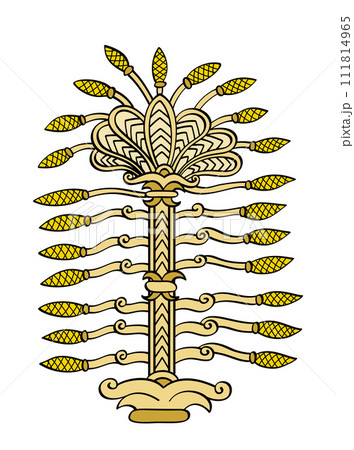 Tree of Life, symbol of a sacred tree in ancient Mesopotamia, as it was depicted on a breastplate of king Ashurbanipal. Important religious symbol, with equally divided branches on both stem sides.