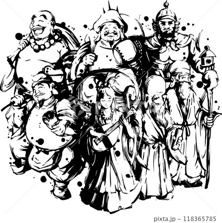 七福神 筆タッチ手描き 立ちポーズイラストセット