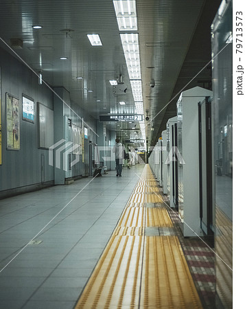 東京都、地下鉄メトロの竹橋駅ホーム風景