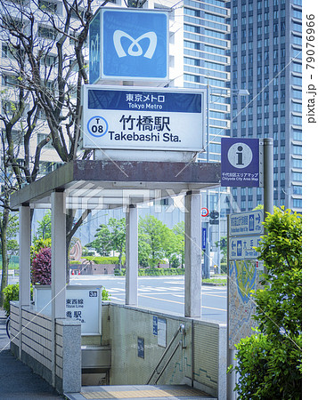 東京都、地下鉄メトロの竹橋駅出入口風景