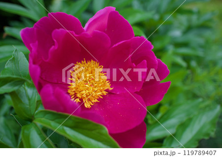 生薬である「立てば芍薬」、品種はポーラフェイ、花言葉は「恥じらい」「はにかみ」。