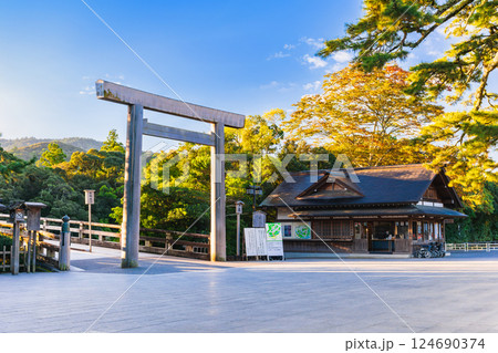 伊勢神宮内宮 朝日に照らされる宇治橋鳥居