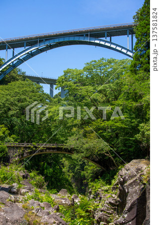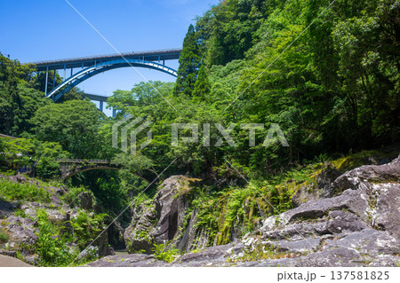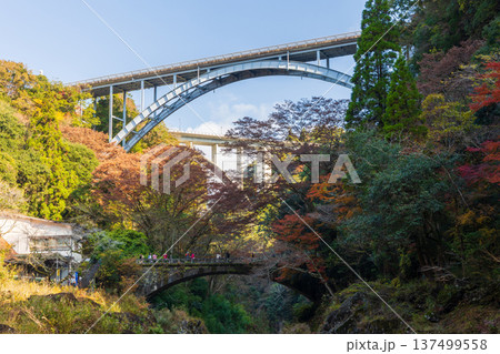 秋の神橋と高千穂大橋(高千穂峡) 宮崎県高千穂町
