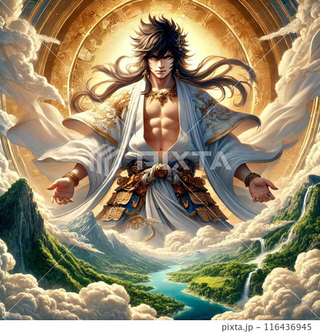 文字入りで正面を向いて立っているアマテラスオオミカミ