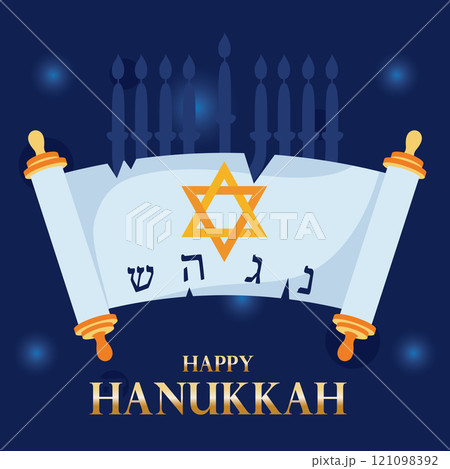 Scroll and menorah design for Happy Hanukkah Vector