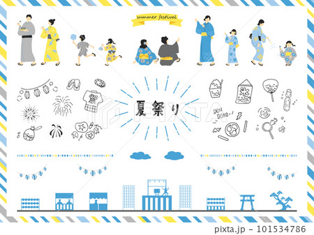 祭と書かれた提灯のイメージイラストセット