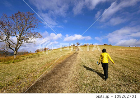 十一月、秋の九州、熊本県、阿蘇郡、南小国町にある押戸石の丘をさんぽ、天高く肥ゆる秋の空、九州ドライブ