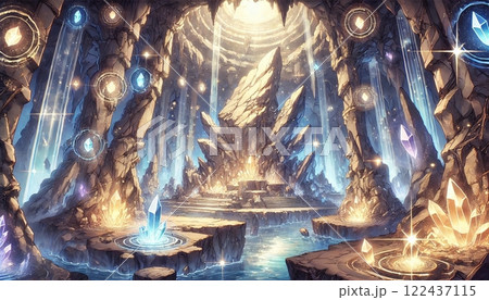 魔法陣が浮かぶ神秘的な祭壇・幻想世界の儀式