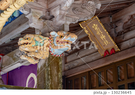 宗形神社 拝殿の扁額と木鼻 鳥取県米子市宗像
